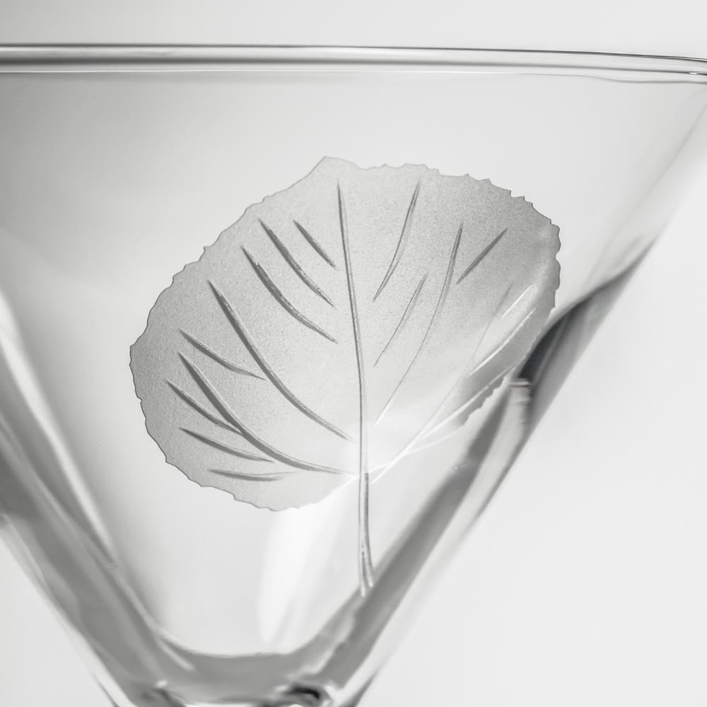 The flat heart shaped leaf of the Aspen tree symbolizes protection and the process of overcoming our fears. Aspen trees grow together in the wild and form a grove near streams, or rivers. Quench your thirst and bring the great outdoors to the table all year round with this exquisite, engraved Aspen Leaf 10oz Martini. Share a Basil Gimlet cocktail with the people in your grove.