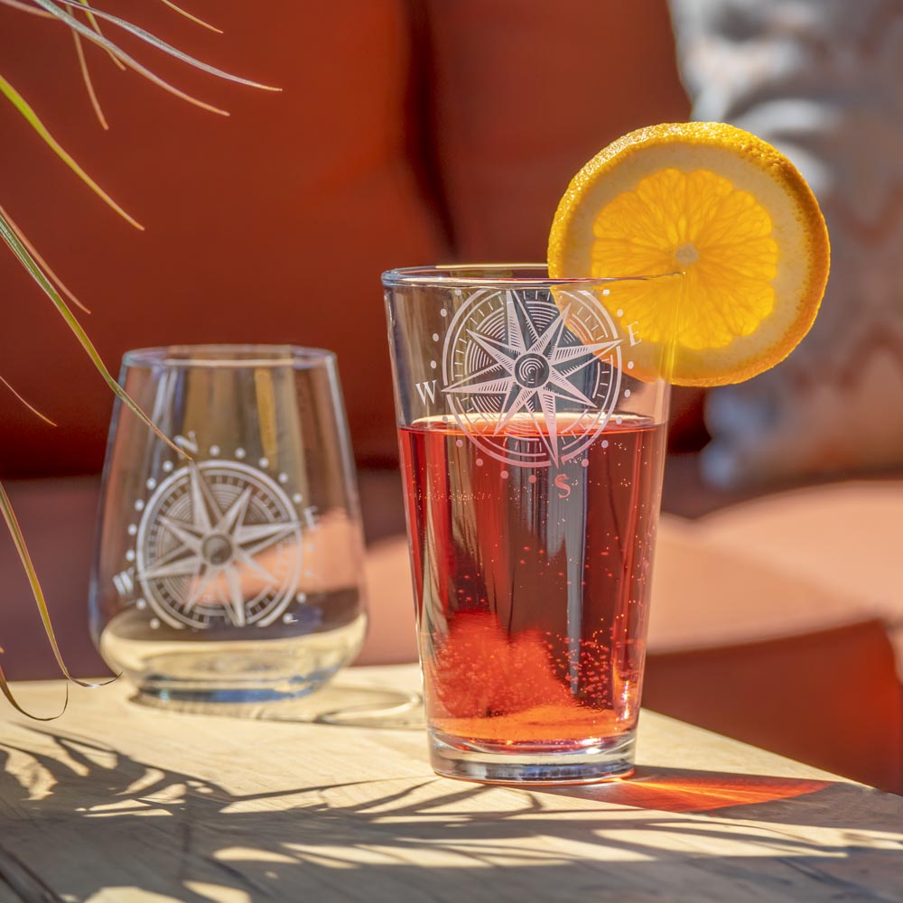 Introducing the Rolf Glass Compass Star 16oz Beer Pint Glass, the perfect addition to any home bar.