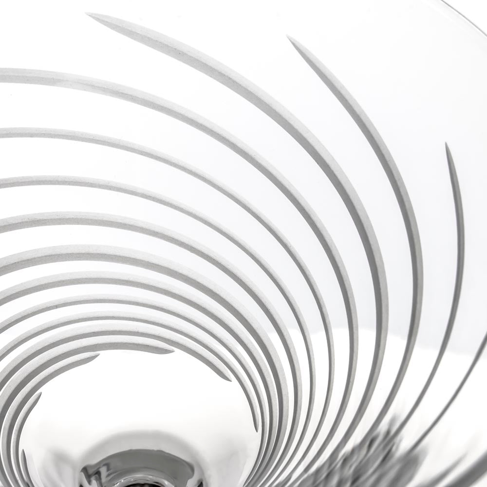 The Cyclone collection from Rolf Glass is modern, fun, bold and visually mesmerizing. Deeply engraved counterclockwise lines travel around the glass creating an illusion of cyclonic motion.