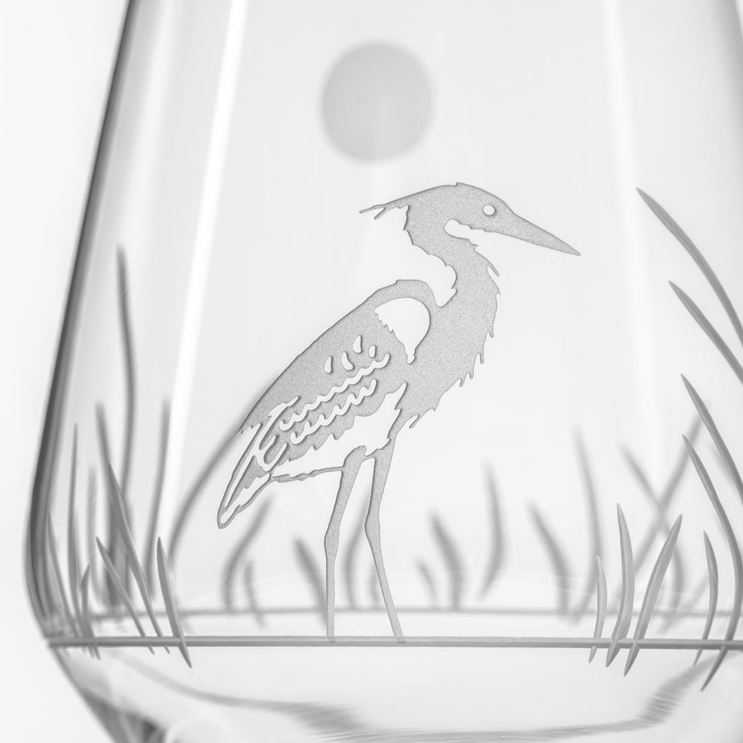 Long revered as the symbol of prosperity, the Heron gracefully adorns this picturesque landscape glassware by Rolf Glass. Skillful diamond engraving combined with sand etched accents make this collection an instant classic. Whether for the zen master or the thoughtful mother, the Heron is a meaningful gift of gratitude.
