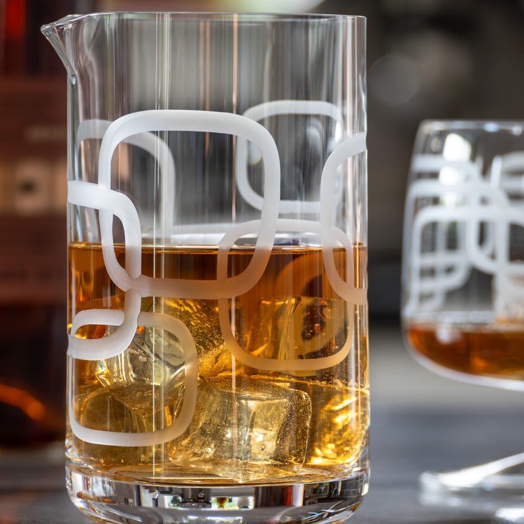 Expertly made and diamond-wheel engraved in the USA, this mixing glass is the perfect blend of function and art. Its clean cylindrical shape and precise pour spout make it ideal for crafting martinis, Negronis, or old fashioneds with effortless control and timeless flair.