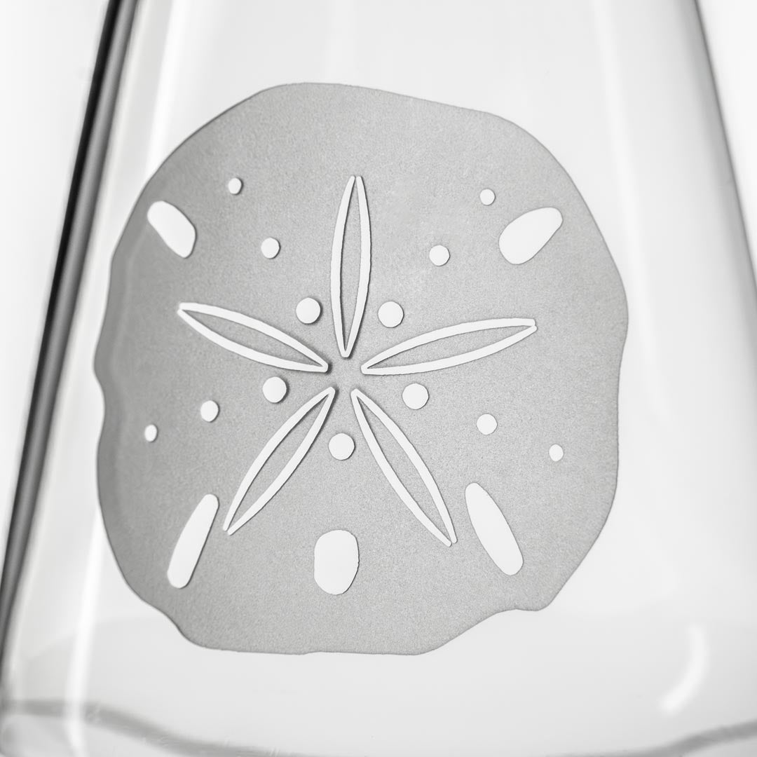 The mythological legend of the Sand Dollar claims they represent coins lost by mermaids. Today beachcombers who find Sand Dollars along the shore consider it a lucky omen! The Rolf Glass Sand Dollar design uses sand engraving to imitate the look and feel of the Sand Dollar.
